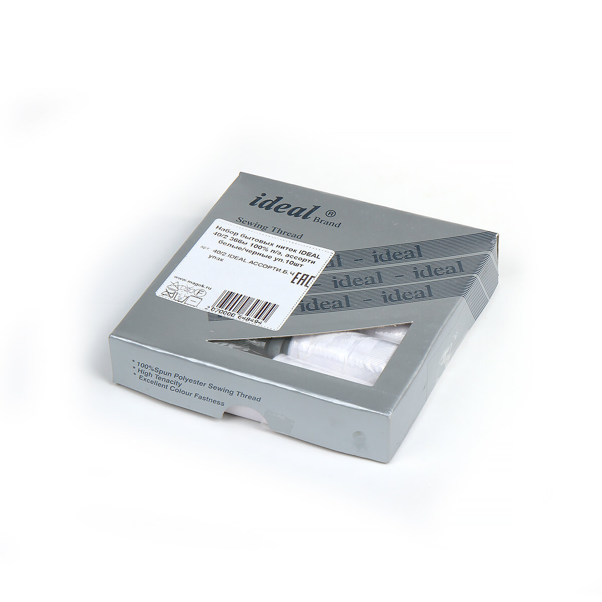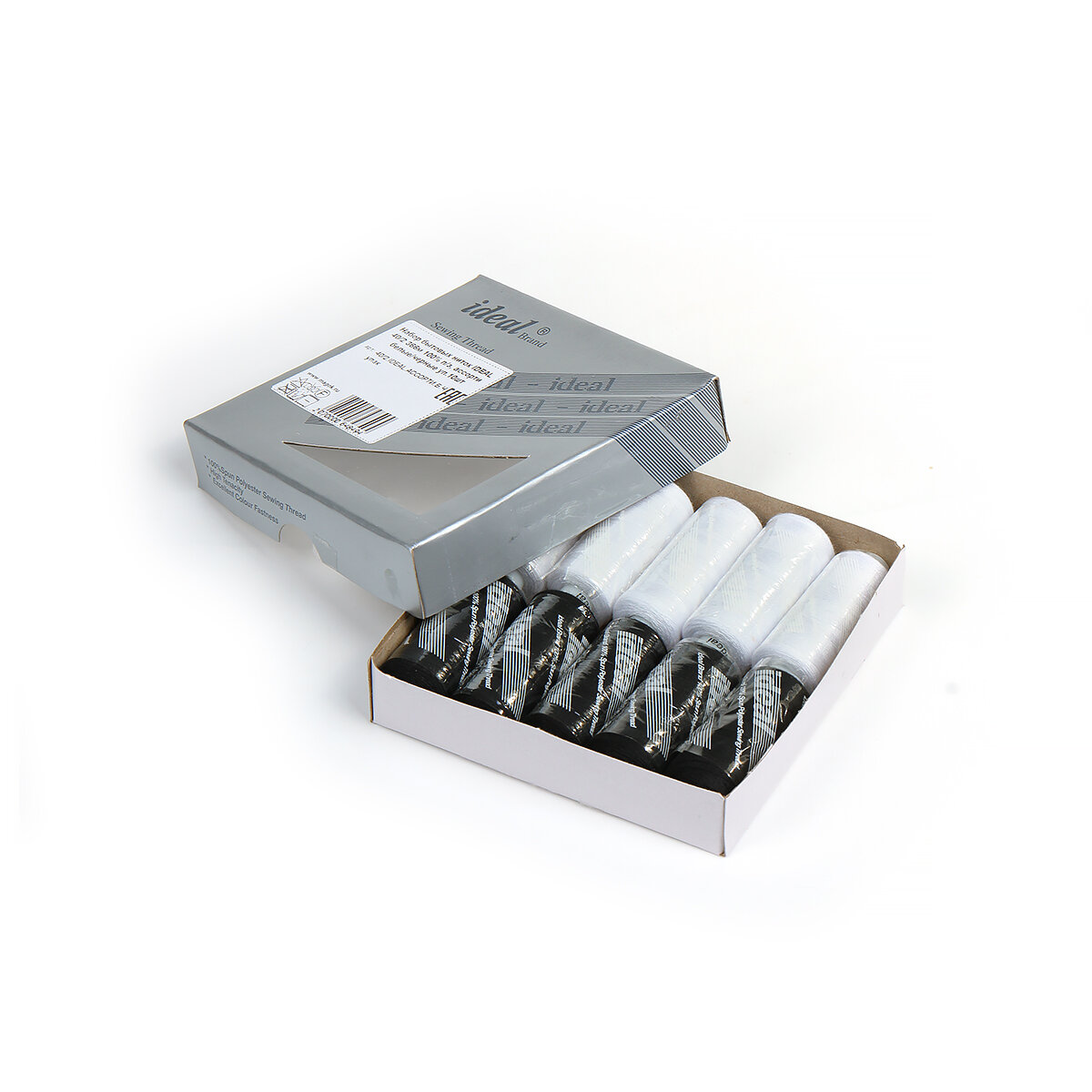 Купить Нитки бытовые IDEAL, толщина 40/2, полиэстер 100%, 366м, уп. 10шт, ассорти белые и черные