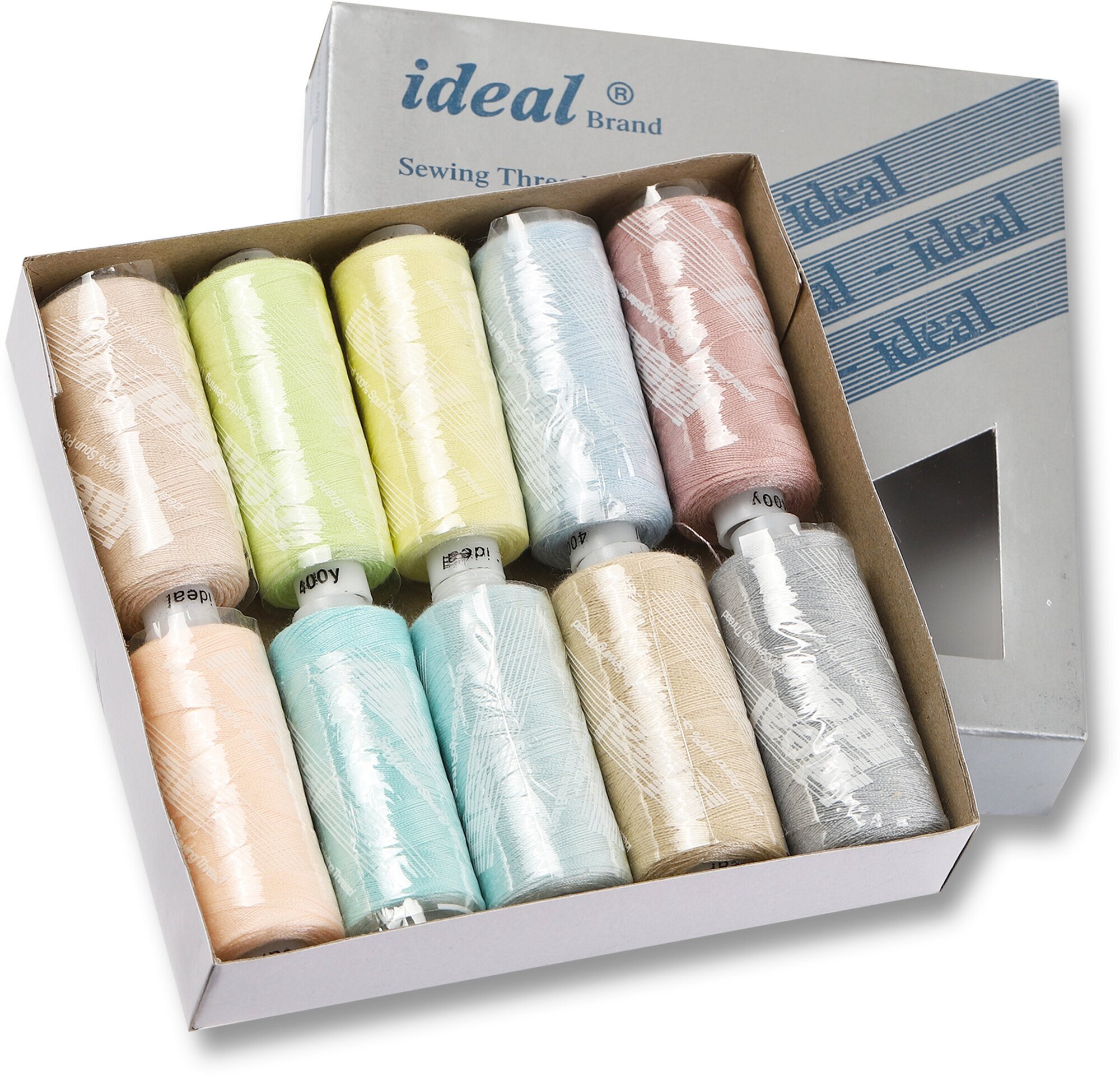 Набор бытовых ниток IDEAL, толщина 40/2, полиэстер 100%, 366м, уп. 10шт, ассорти джинс