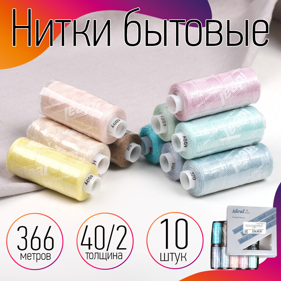 СохранитьНабор бытовых ниток IDEAL 40/2 366м 100% п/э, MIX PE, ассорти 2 уп.10шт интересное:
