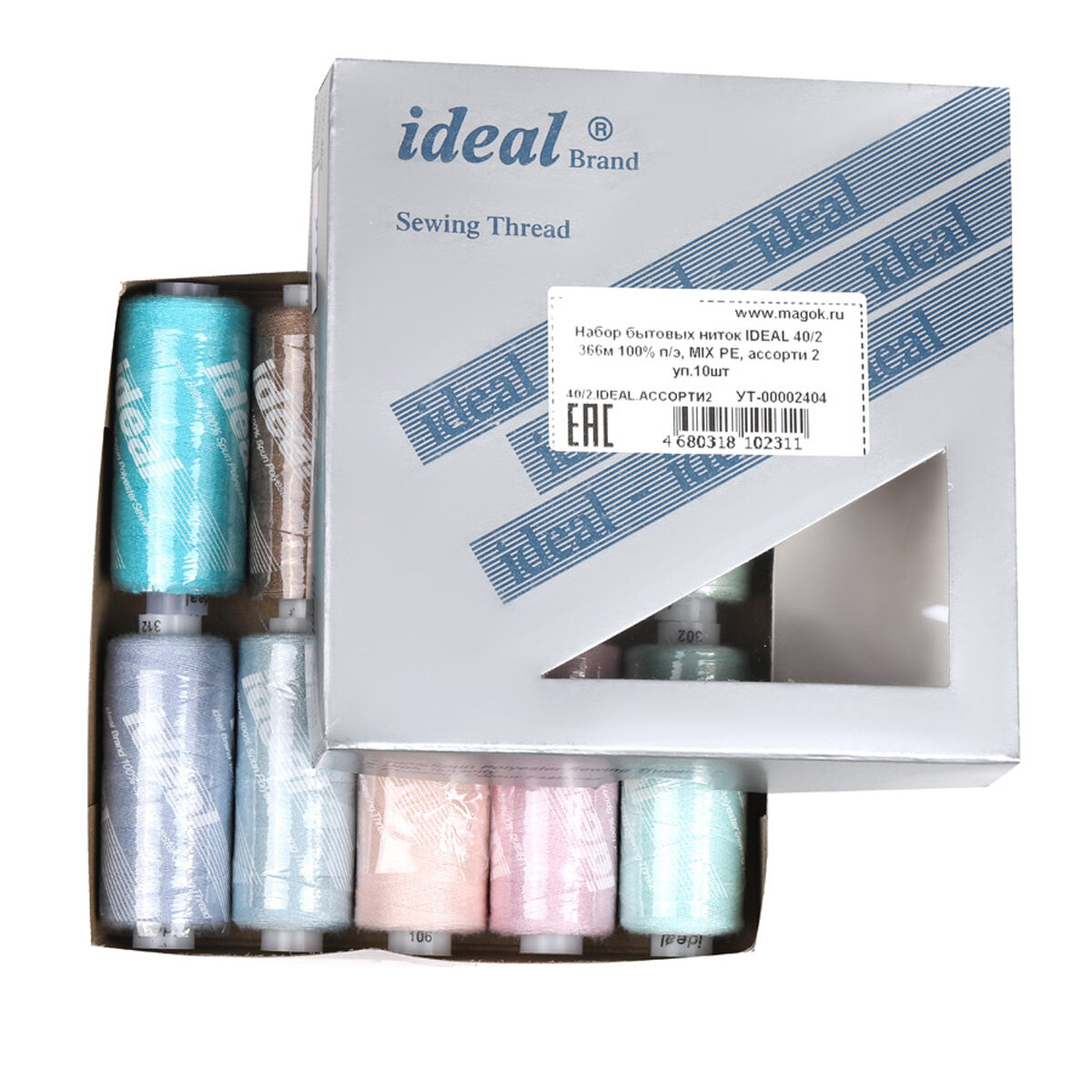 Набор бытовых ниток IDEAL 40/2 366м 100% п/э, MIX.1 уп.10шт