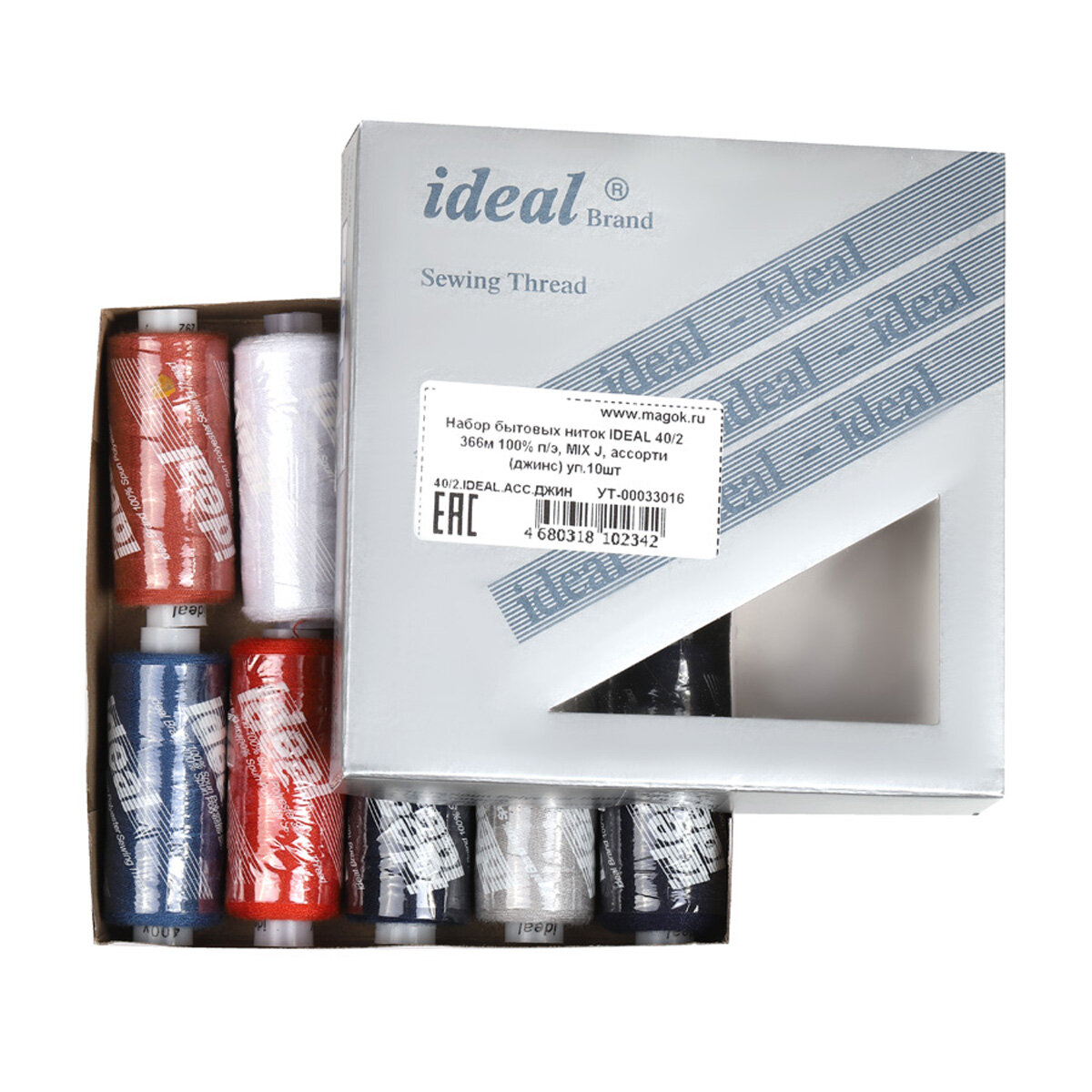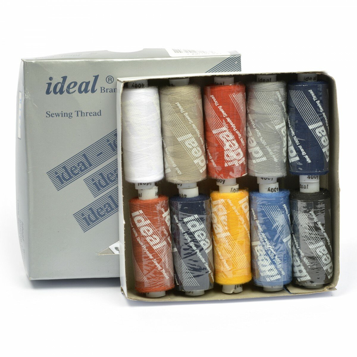 Купить Набор бытовых ниток IDEAL, толщина 40/2, полиэстер 100%, 366м, уп. 10шт, ассорти джинс