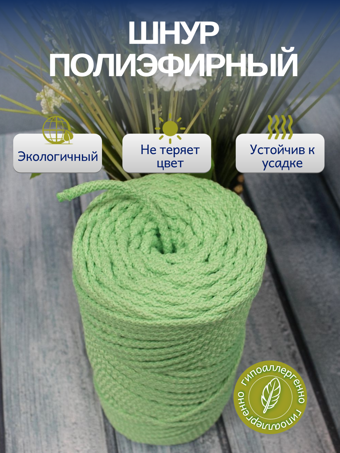 СохранитьШнур полиэфирный с сердечником 5мм салатовый №181 100м интересное: