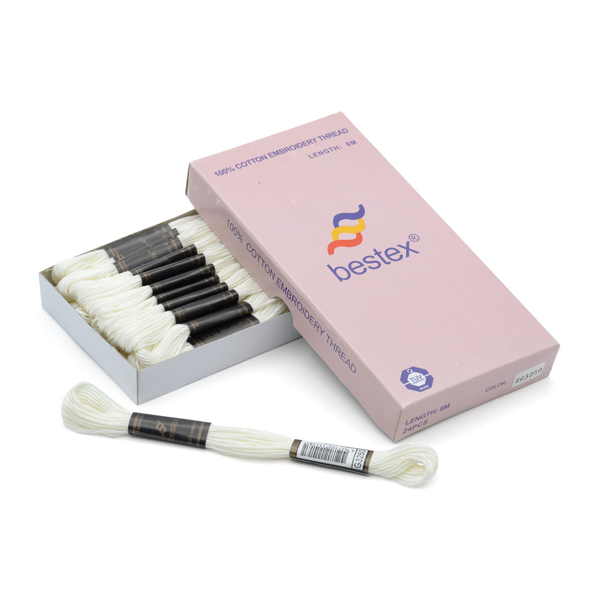 Мулине одноцветный набор Bestex, мерсеризованный хлопок, 24 шт (A001 DM Blanc)