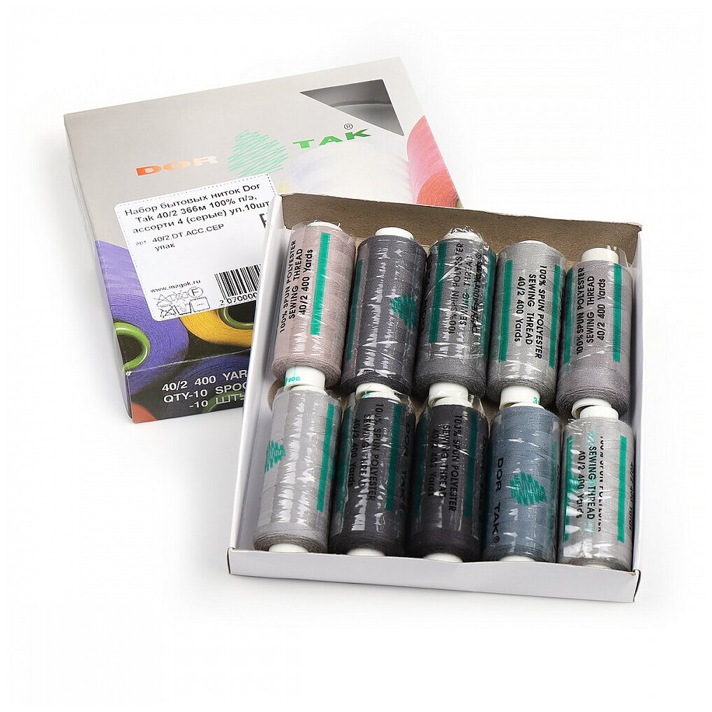 Купить Набор бытовых ниток Dor Tak, толщина 40/2, 366м, 100% полиэстер, уп.10шт, №4 серые
