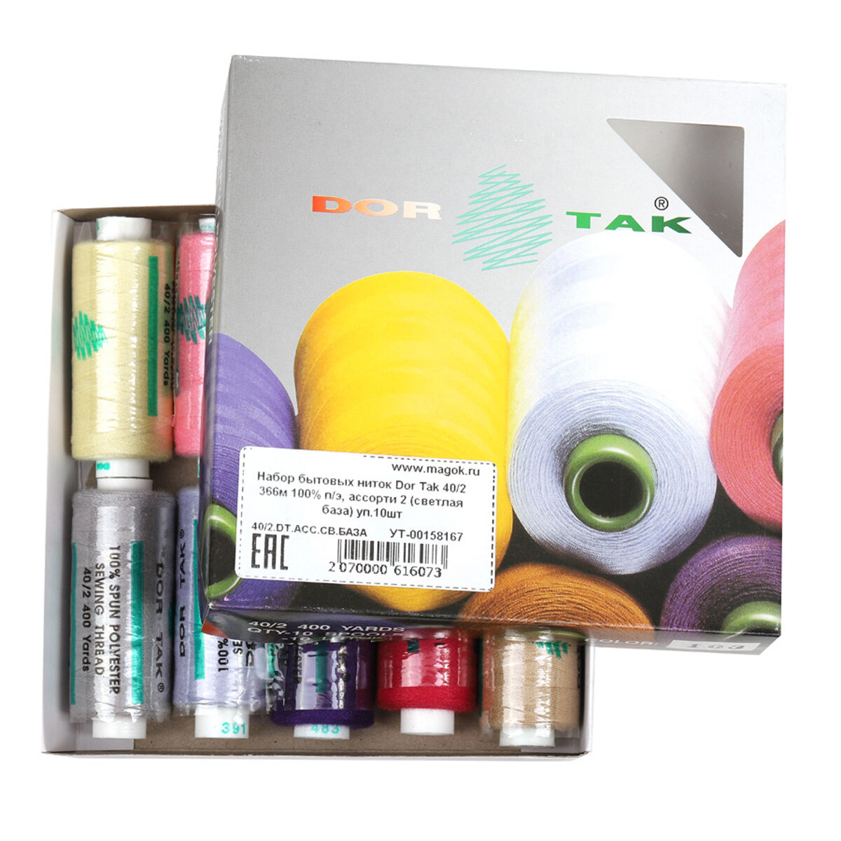 Купить Набор бытовых ниток Dor Tak, толщина 40/2, 366м, 100% полиэстер, уп.10шт, №2 светлая база