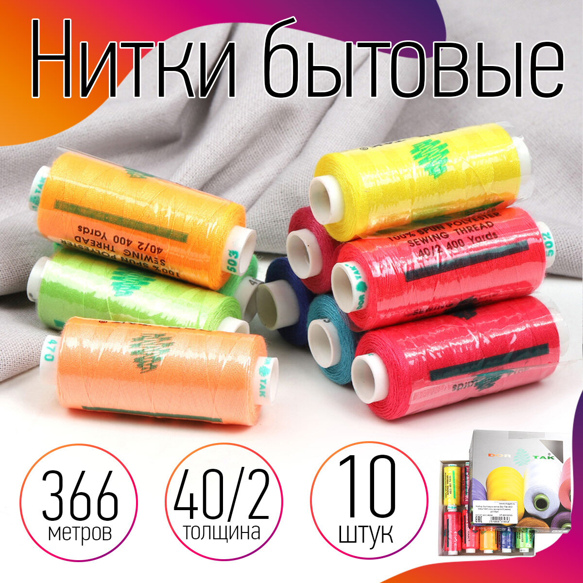 СохранитьНабор бытовых ниток Dor Tak, толщина 40/2, 366м, 100% полиэстер, уп.10шт, №6 неон интересное: