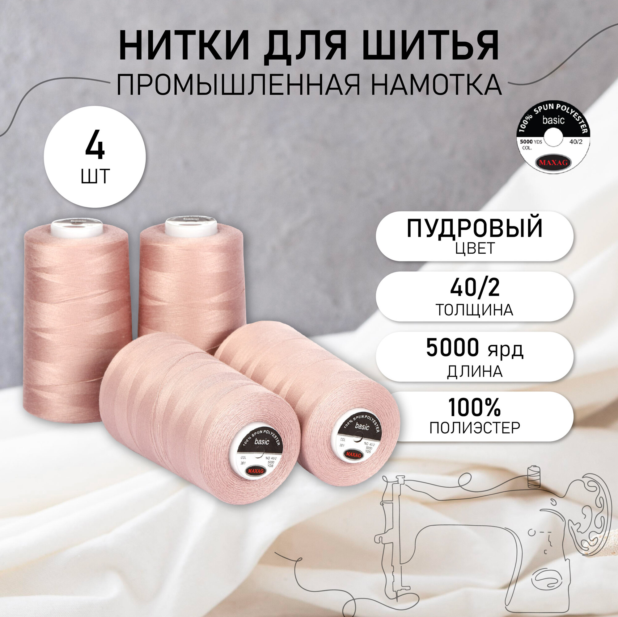 Купить Нитки швейные MAXAG basic, 40/2, полиэстер, 5000 ярд, цвет 361 пудровый MAX, уп.4шт