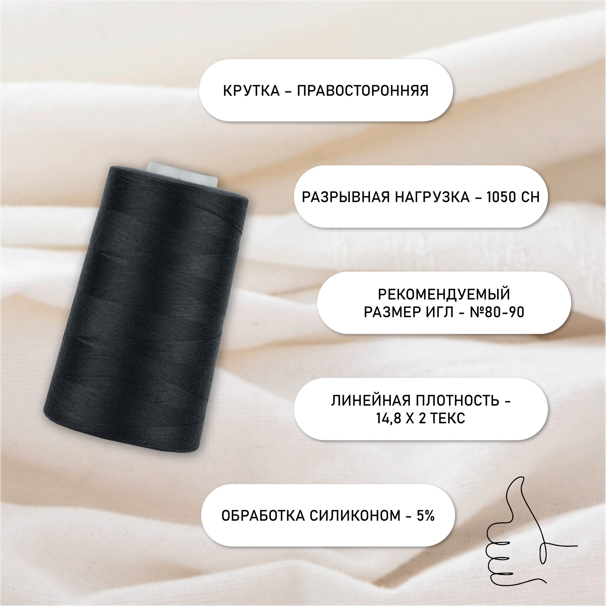Нитки швейные MAXAG basic, 40/2, полиэстер, 5000 ярд, цвет черный MAX, уп.4шт