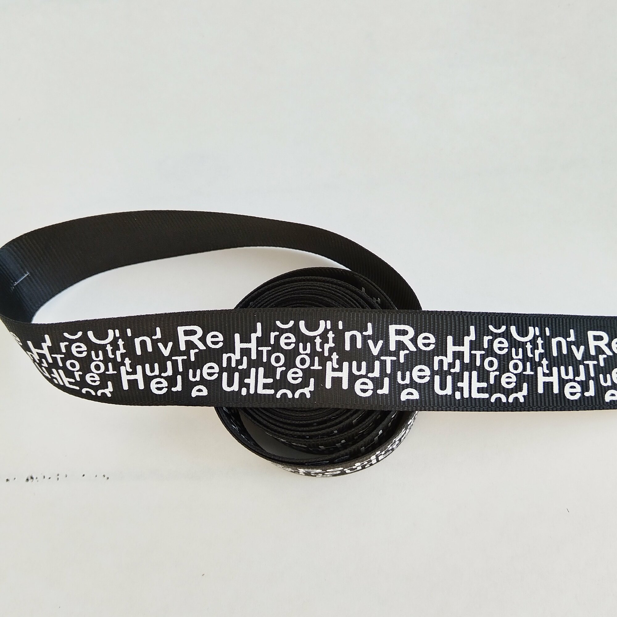 Купить Лента/ тесьма репсовая для шитья принт буквы белый на черном ш.25 мм, в уп.2 м, для шитья, творчества, рукоделия.