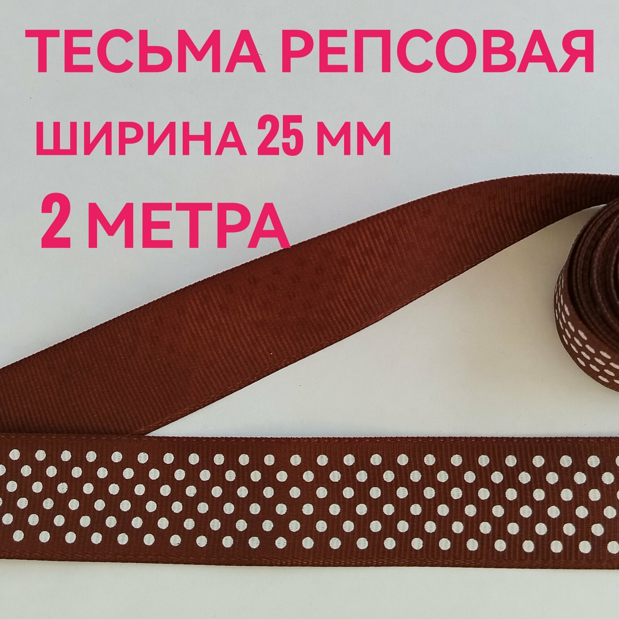 Купить Лента/ тесьма репсовая для шитья коричневая в белый горох ш.25 мм, в уп.2 м, для шитья, творчества, рукоделия.
