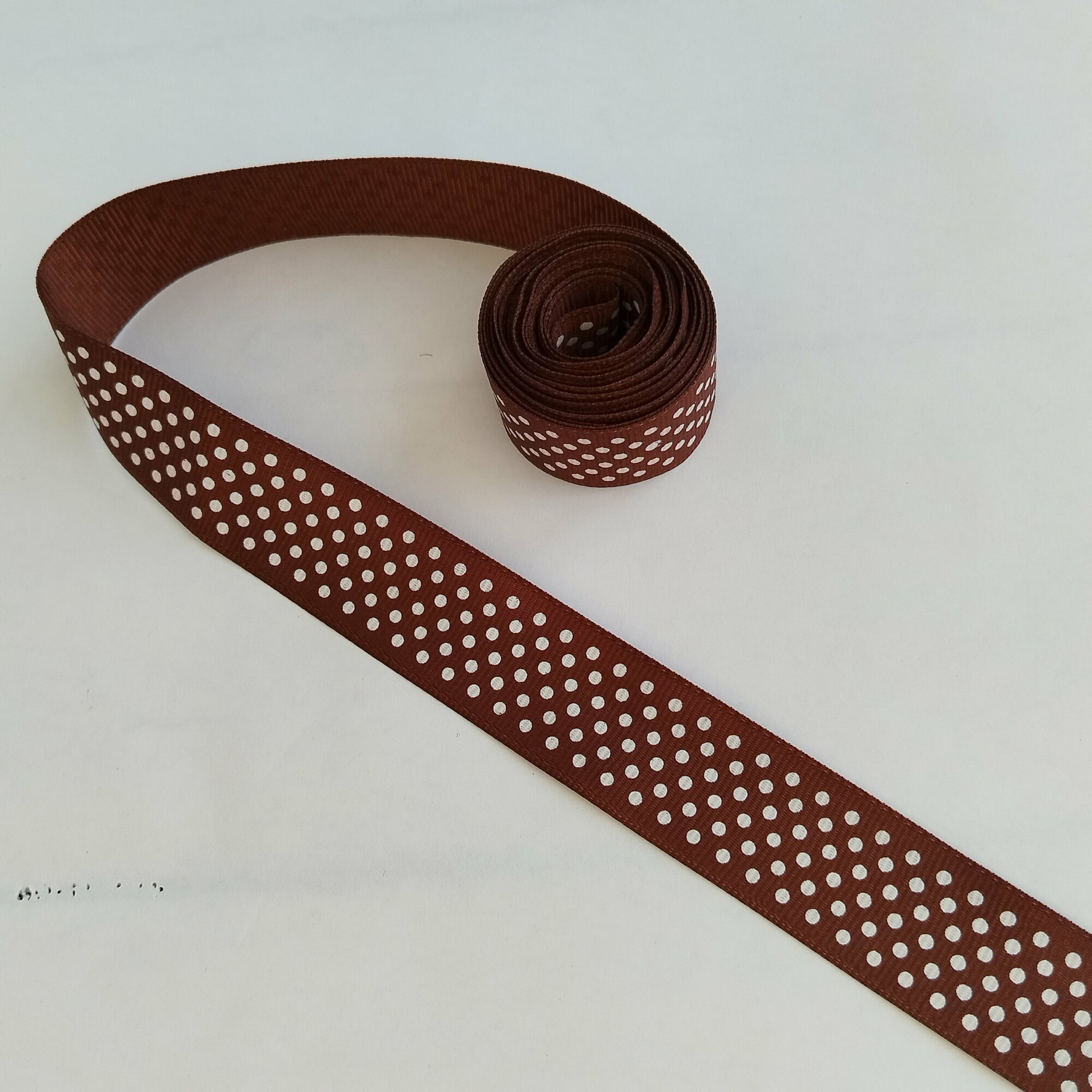 Лента/ тесьма репсовая для шитья коричневая в белый горох ш.25 мм, в уп.3 м, для шитья, творчества, рукоделия.