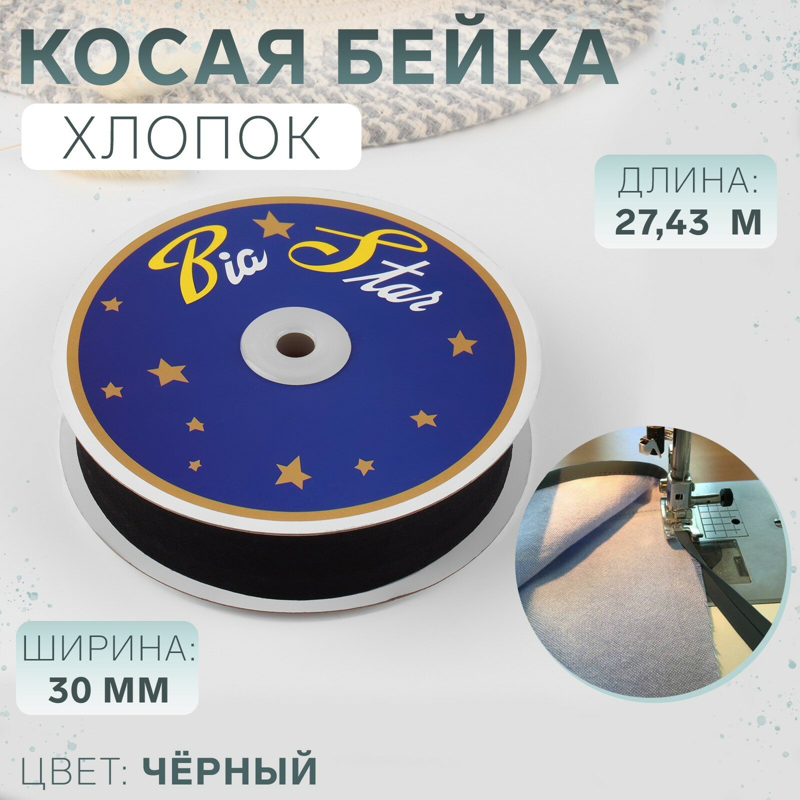 | Дополнительная информация | Косая бейка продается уже готовой в бобинах по 132м и 27,43м, защищенных прозрачной пленкой. |