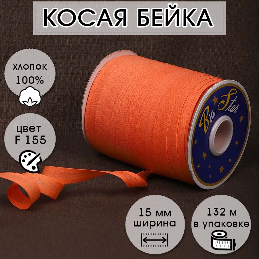 Косая бейка хлопок TBY арт.CB15 шир.15мм цв.F158 оранжевый уп.132 м