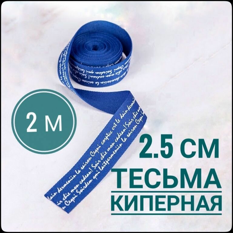 СохранитьТесьма /лента киперная лампас для шитья принт белый на синем ш.2.5 см, в упаковке 2 м, для шитья и рукоделия. интересное: