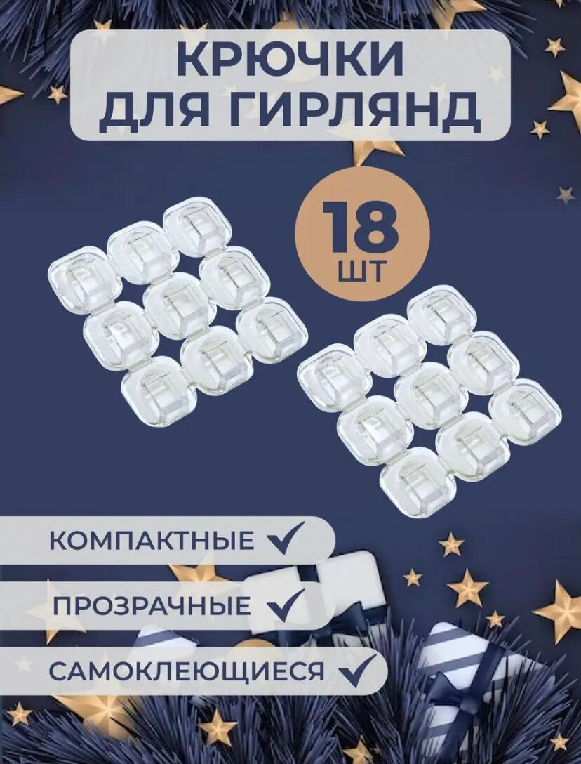 Самоклеющиеся - прозрачные крючки для гирлянд 18шт, держатель для проводов интересное: