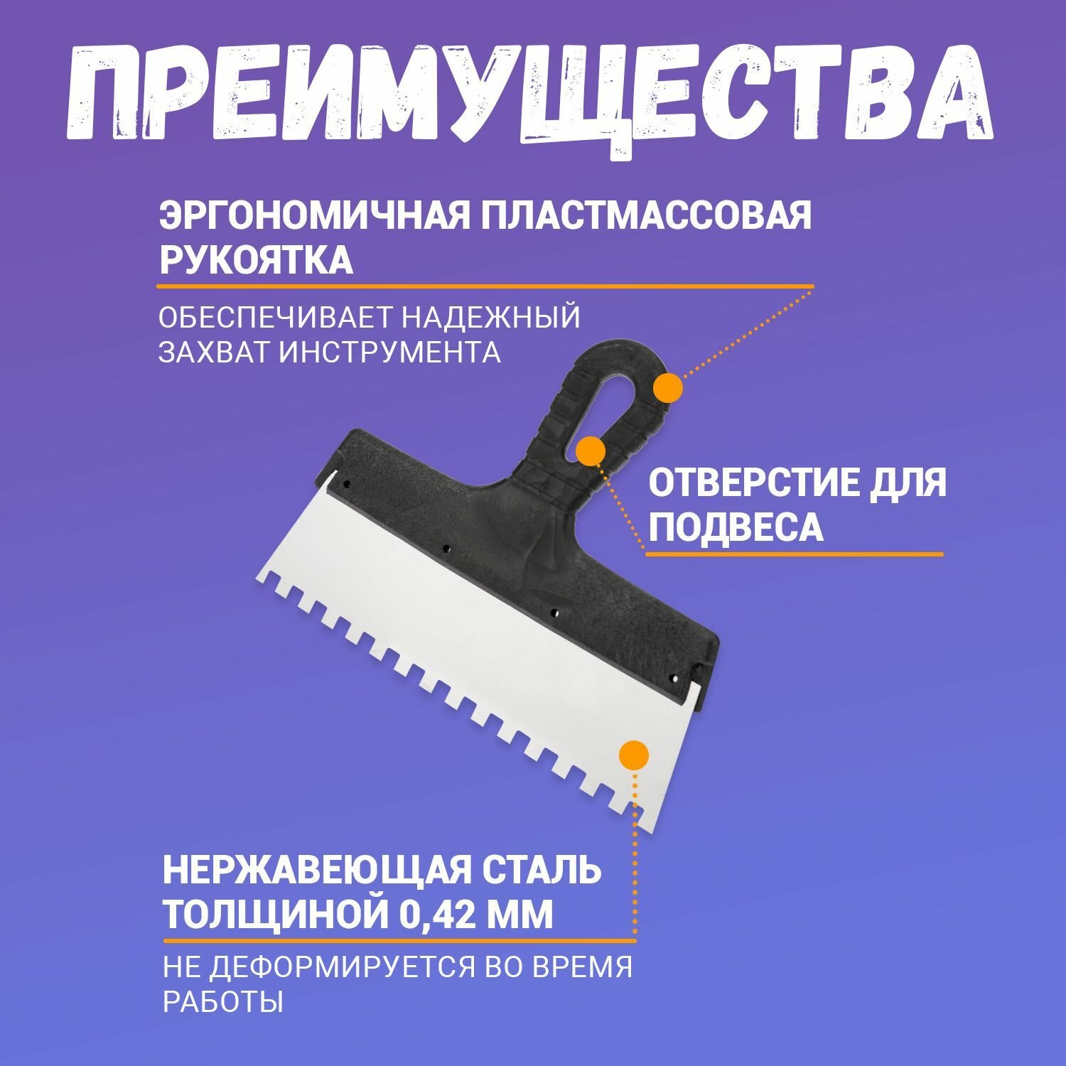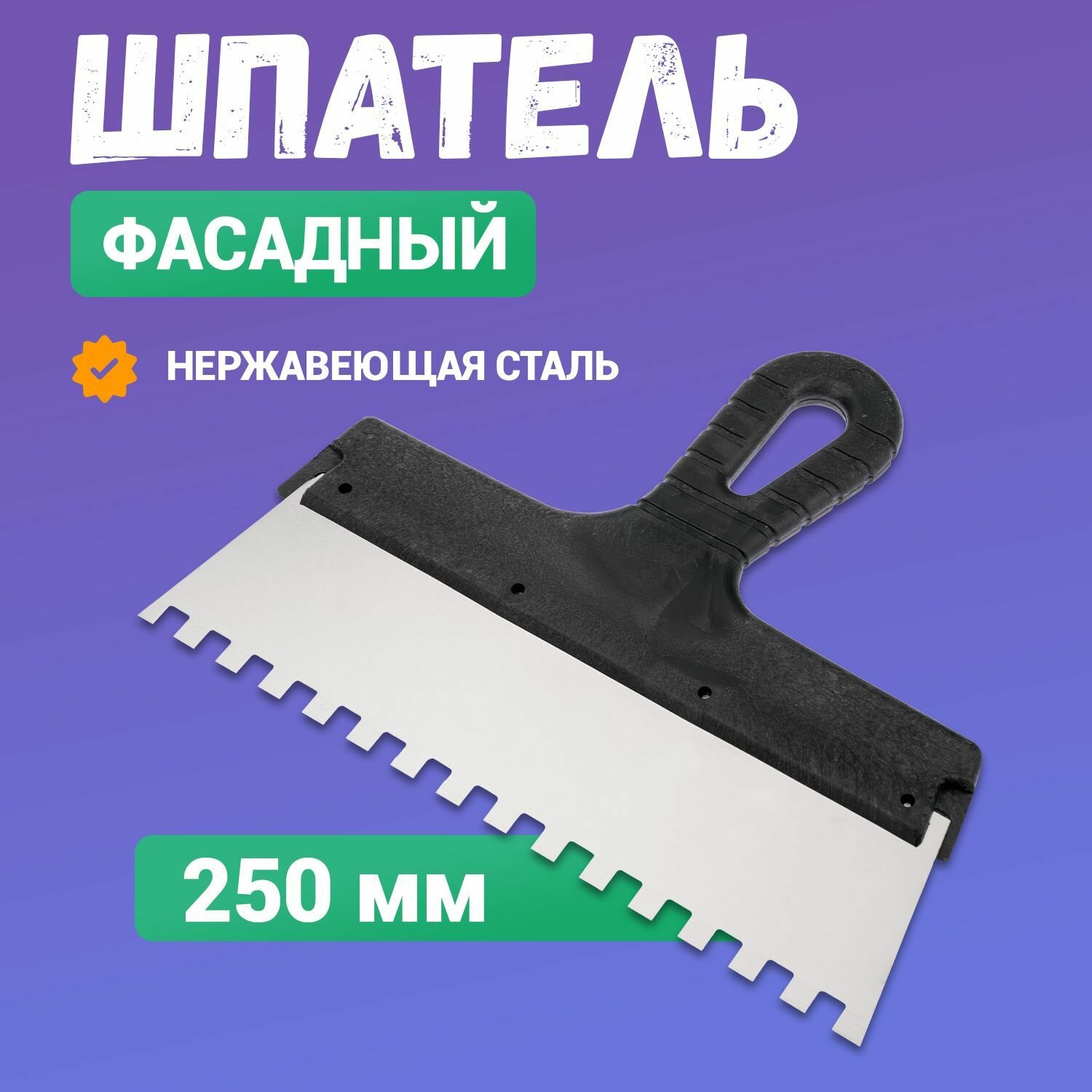Шпатель Rexant фасадный зубчатый строительный малярный для плитки, обоев, потолка 250 мм зуб 8х8 нержавеющая сталь интересное: