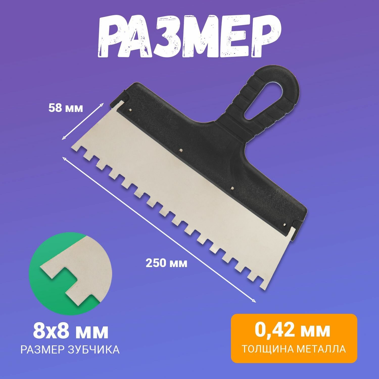 Купить Шпатель Rexant фасадный зубчатый строительный малярный для плитки, обоев, потолка 250 мм зуб 8х8 нержавеющая сталь