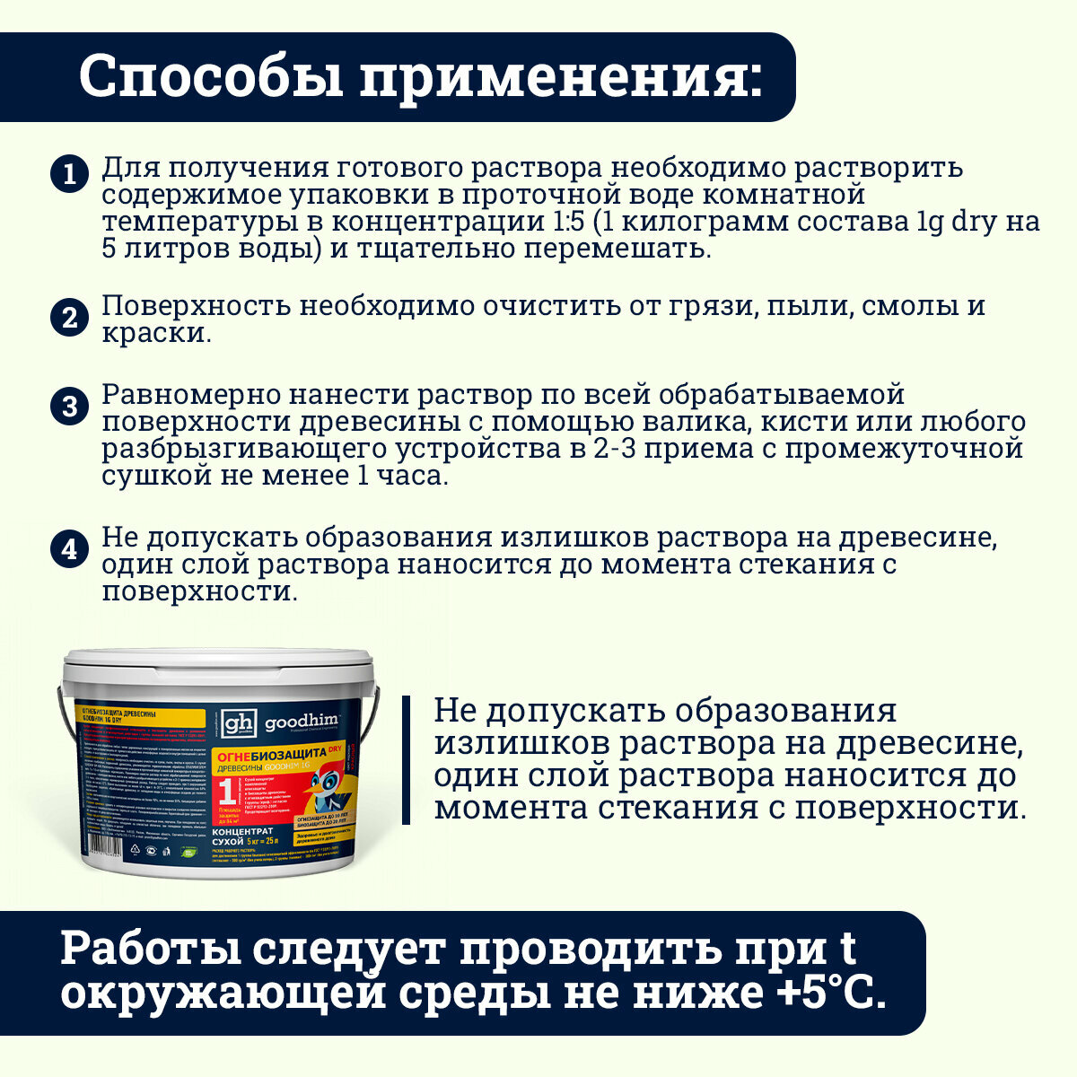 Огнебиозащита 1 группы (Сухой концентрат) GOODHIM 1G DRY, 5кг (вед.) 1472 интересное: