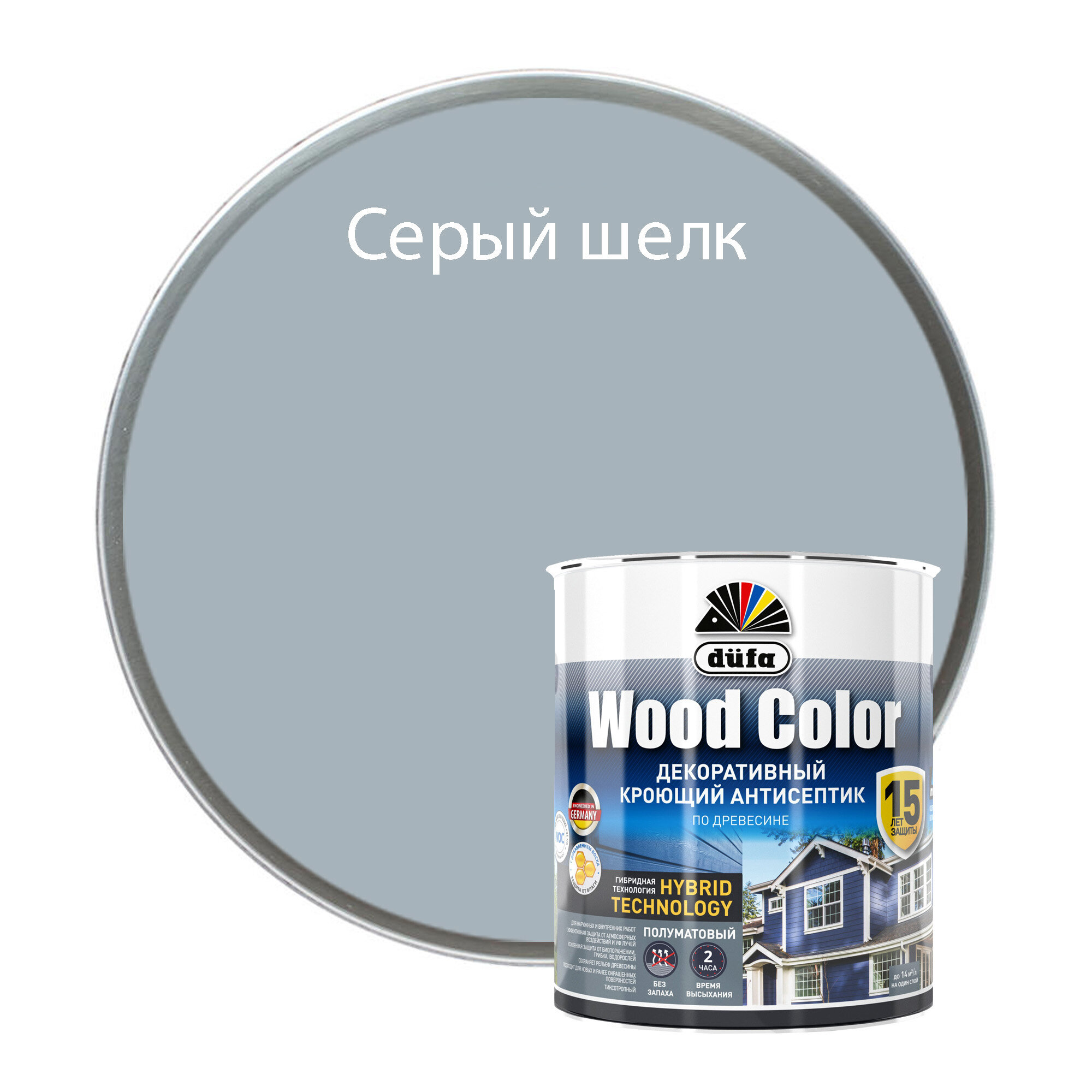 Декоративный Кроющий Антисептик Dufa Wood Color 0.9л Серый Шелк по Древесине, Полуматовый для Внутренних и Наружных Работ / Дюфа Вуд Колор.