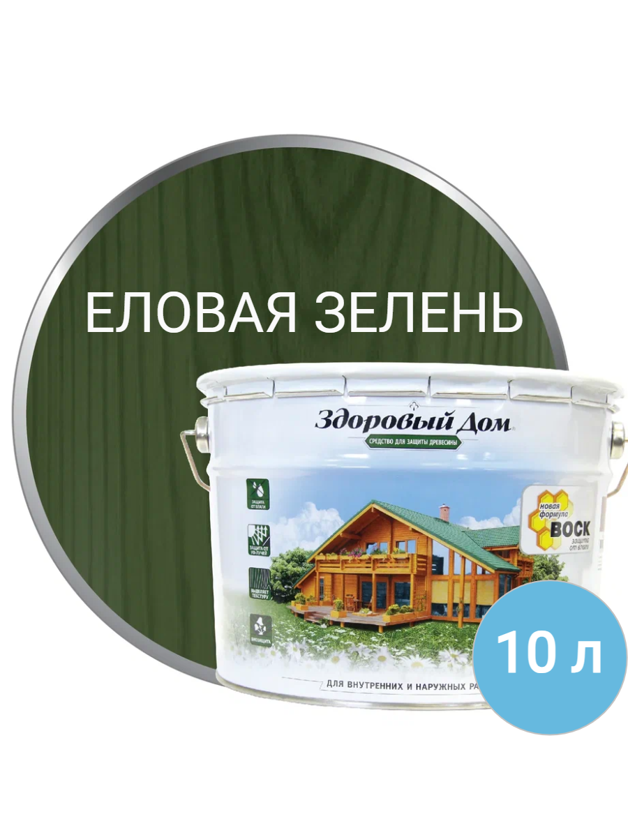 Средство для Защиты Древесины Здоровый Дом 10л Еловая Зелень, Алкидная для Внутренних и Наружных Работ.