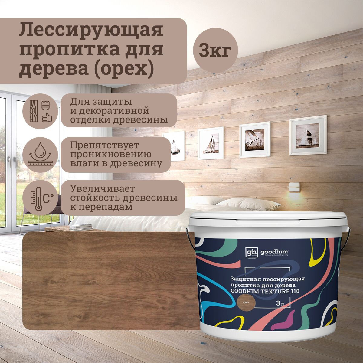 Защитная лессирующая пропитка для дерева GOODHIM TEXTURE 110 (Орех), 3 л 71047 интересное: