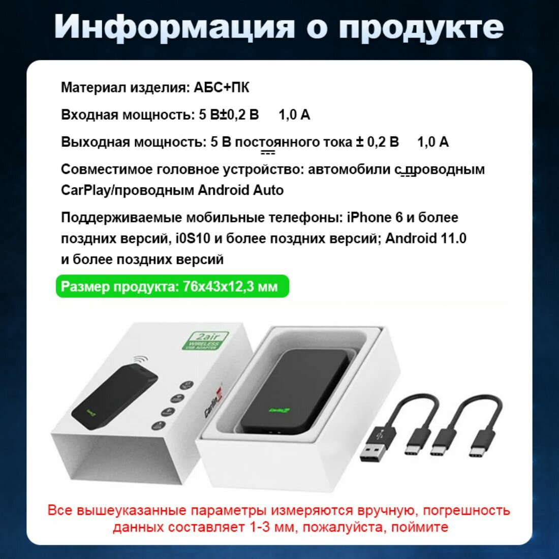 | Совместимость | автомобили с проводным CarPlay/проводным Android Auto |