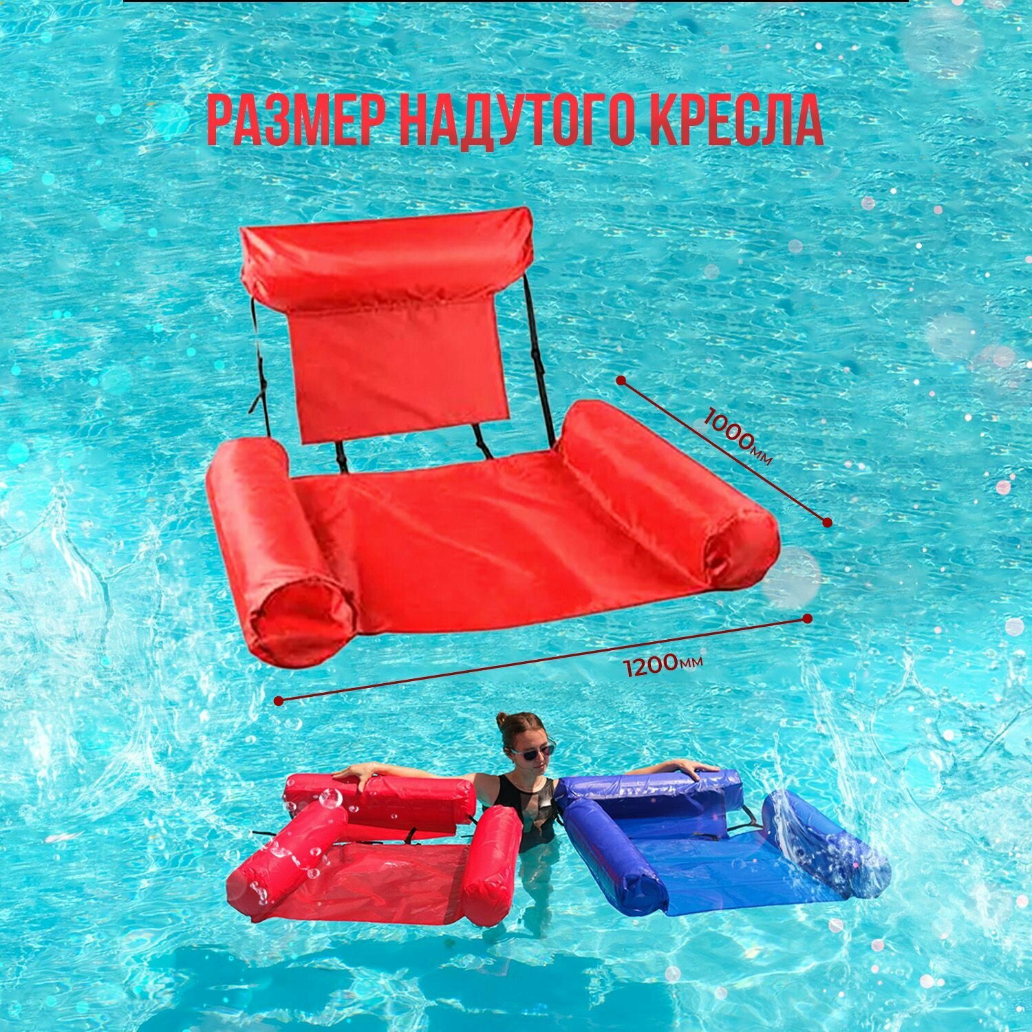 Надувное кресло матрас с подлокотниками и спинкой для плавания 100х120 см интересное:
