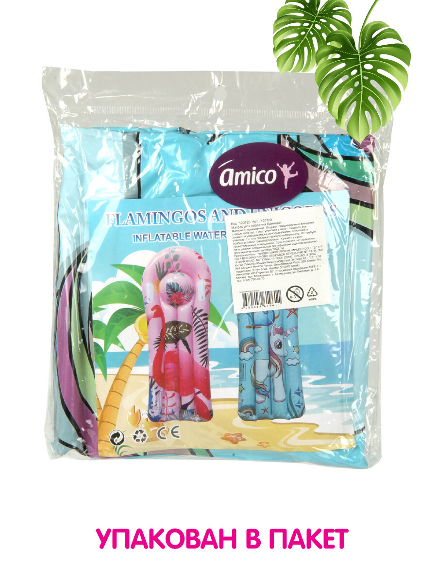 Надувной детский матрас для плавания Единорог 111х44 см, Amico, 120120 интересное: