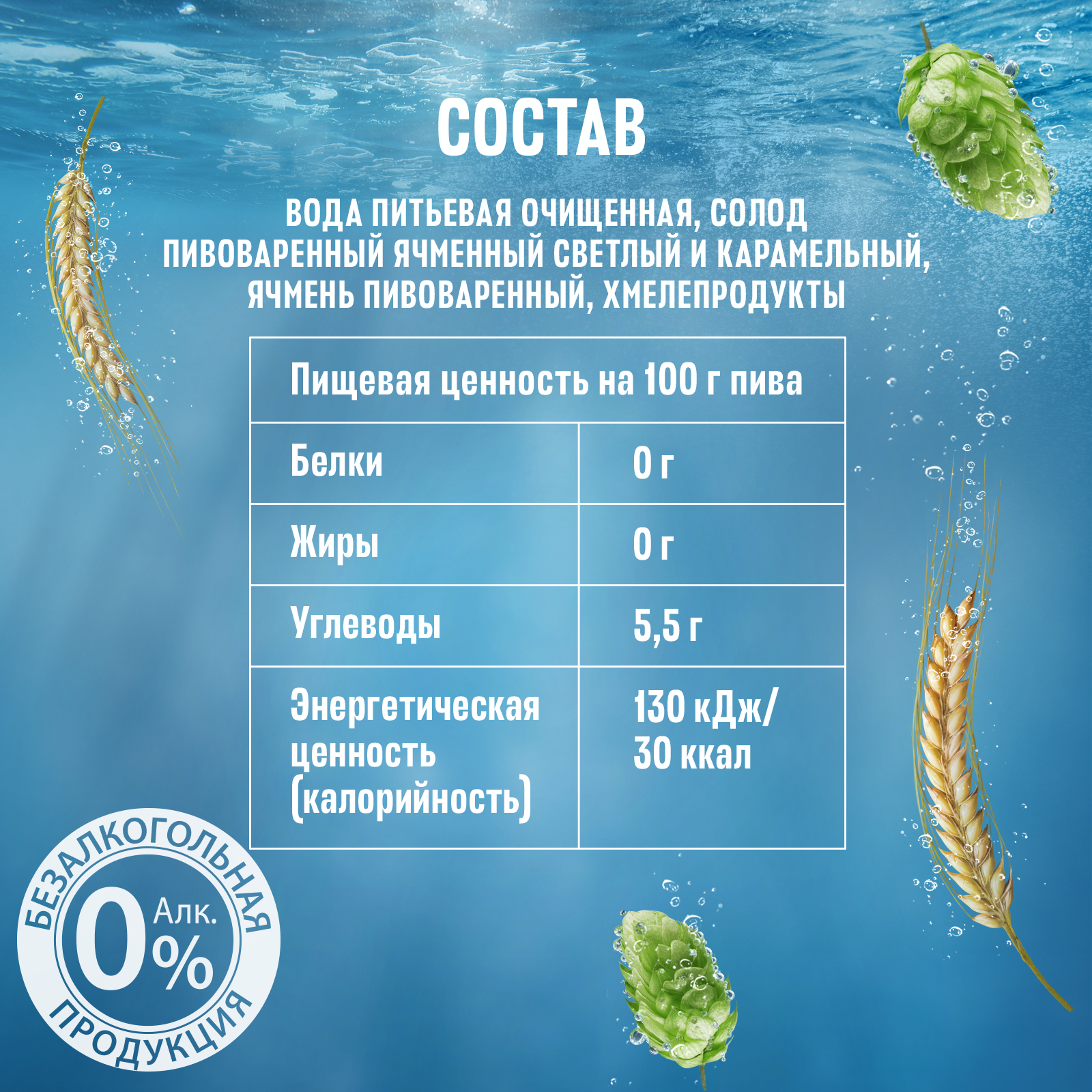 | Дегустационные характеристики | Светлый фильтрованный безалкогольный лагер с насыщенным вкусом, солодовыми и хмелевыми нотами в аромате |