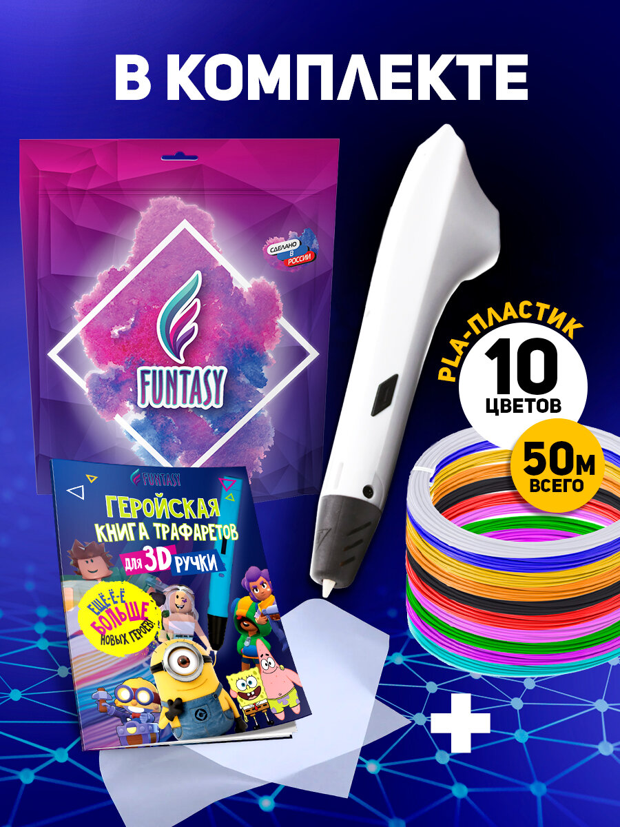Купить Набор для 3Д творчества Funtasy 3D-ручка Simple + PLA пластик 10 цветов + Книжка с трафаретами HERO