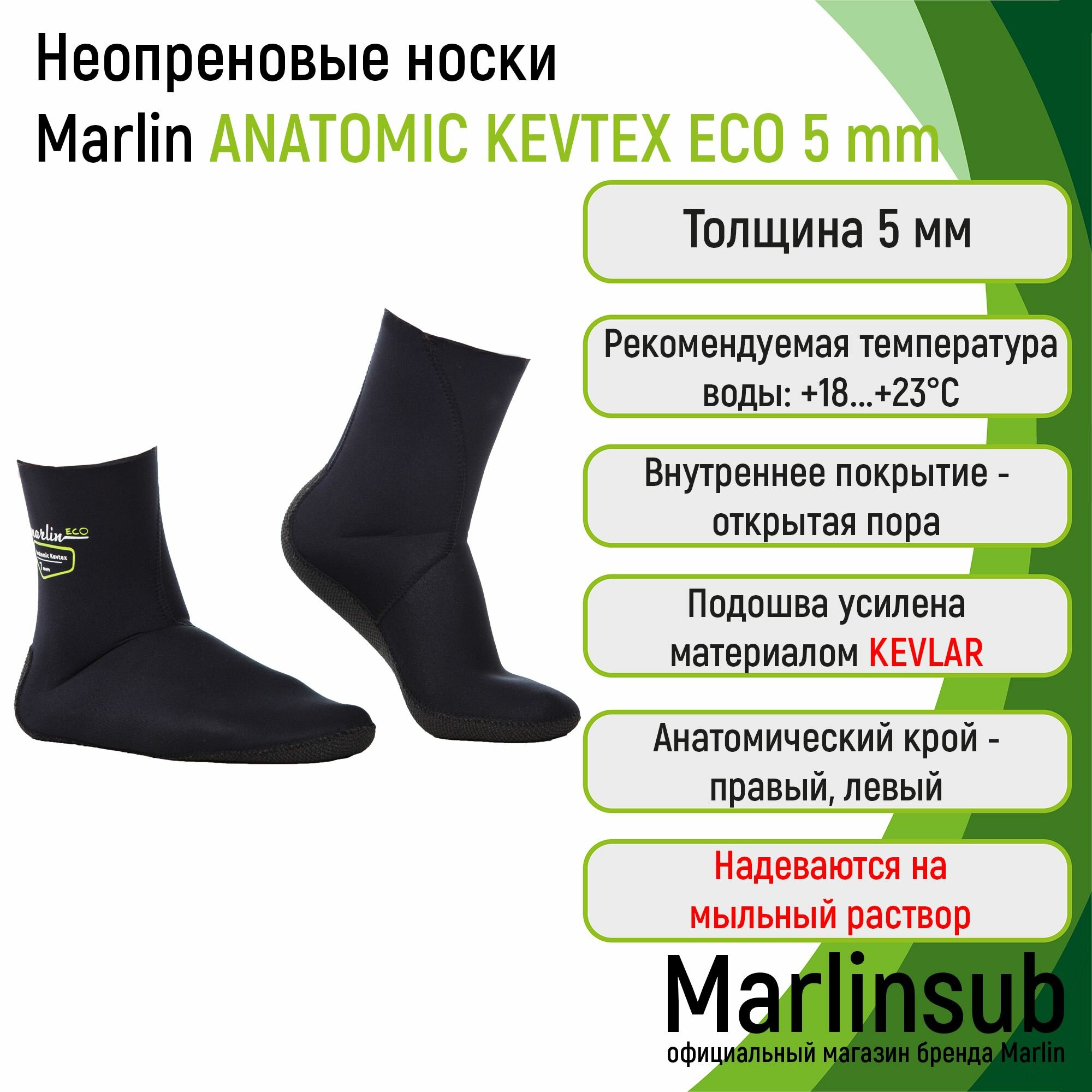 Носки из неопрена 5 мм Marlin ANATOMIC KEVTEX ECO 5 мм 44/45 интересное:
