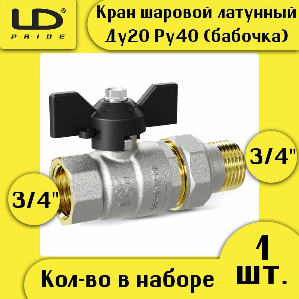 Кран шаровой LD Pride 3/4 американка, вн. нар, бабочка - 2 шт, Ду 20 Ру 40, латунь, LD 47.306.20