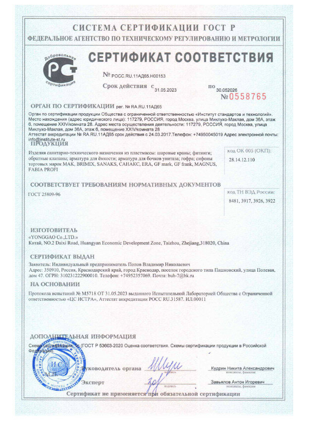 | Комплектация | кран шаровый |