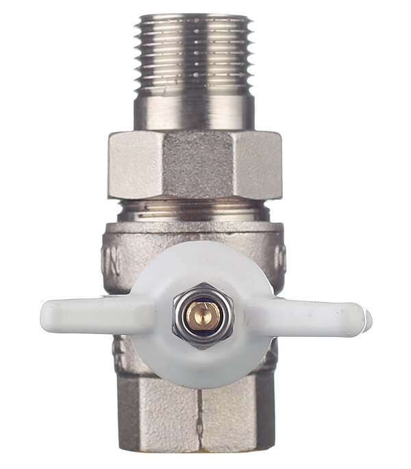Купить Кран шаровой VALTEC BASE с полусгоном 1/2" (американка) внутренняя/наружная резьба белая рукоятка VT.227.NW.04