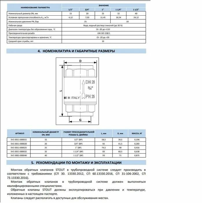 | Комплектация | Клапан обратный Stout 1/2 с латунным седлом (EUROPA), SVC-0011-000015 -1 шт. |