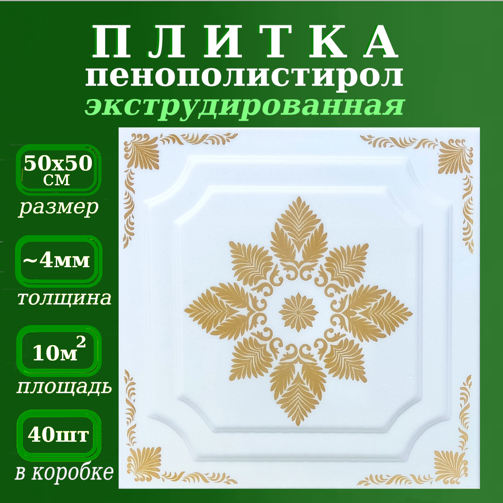 Плитка потолочная из пенопласта с рисунком экструдированная 50х50см