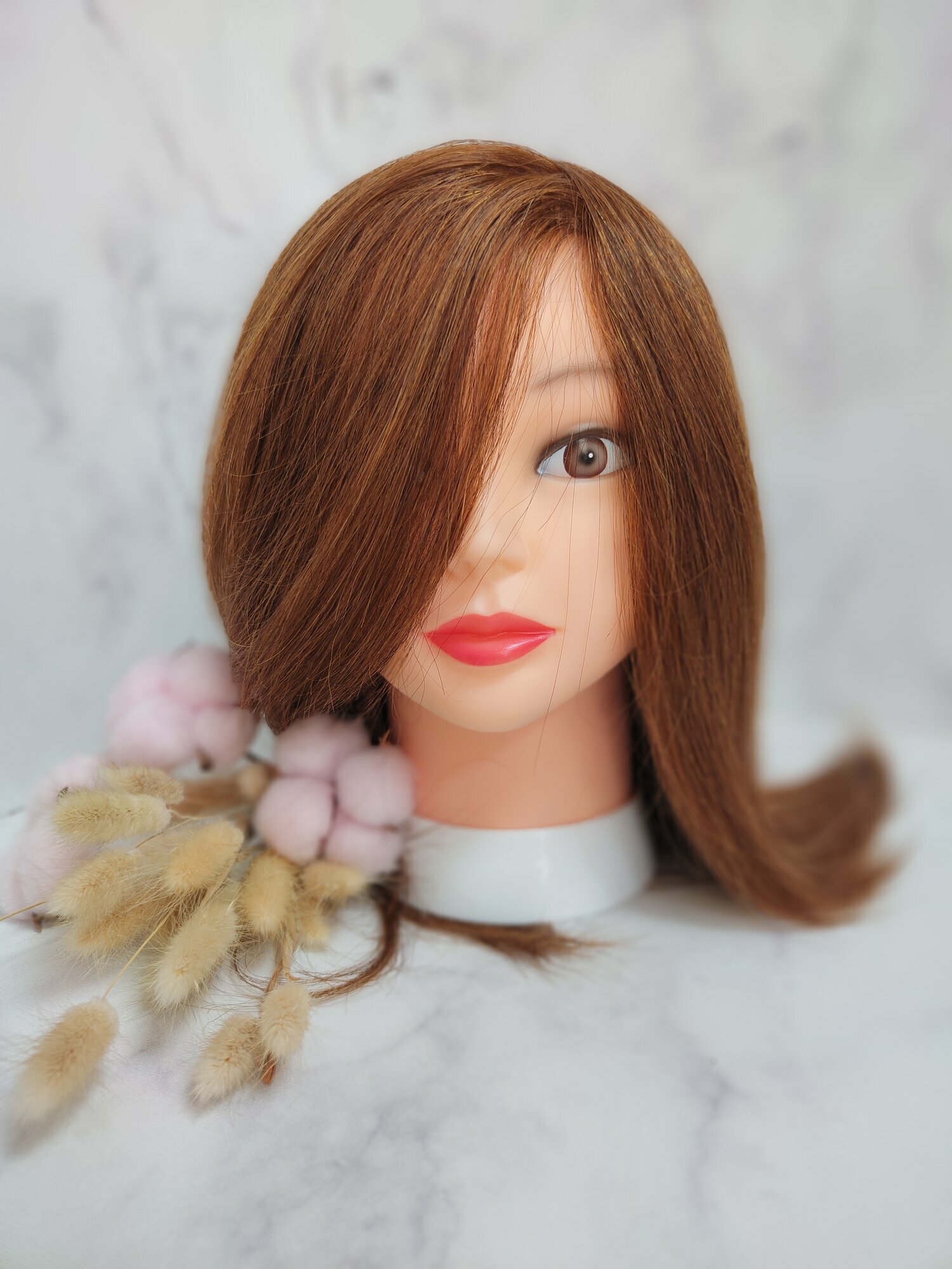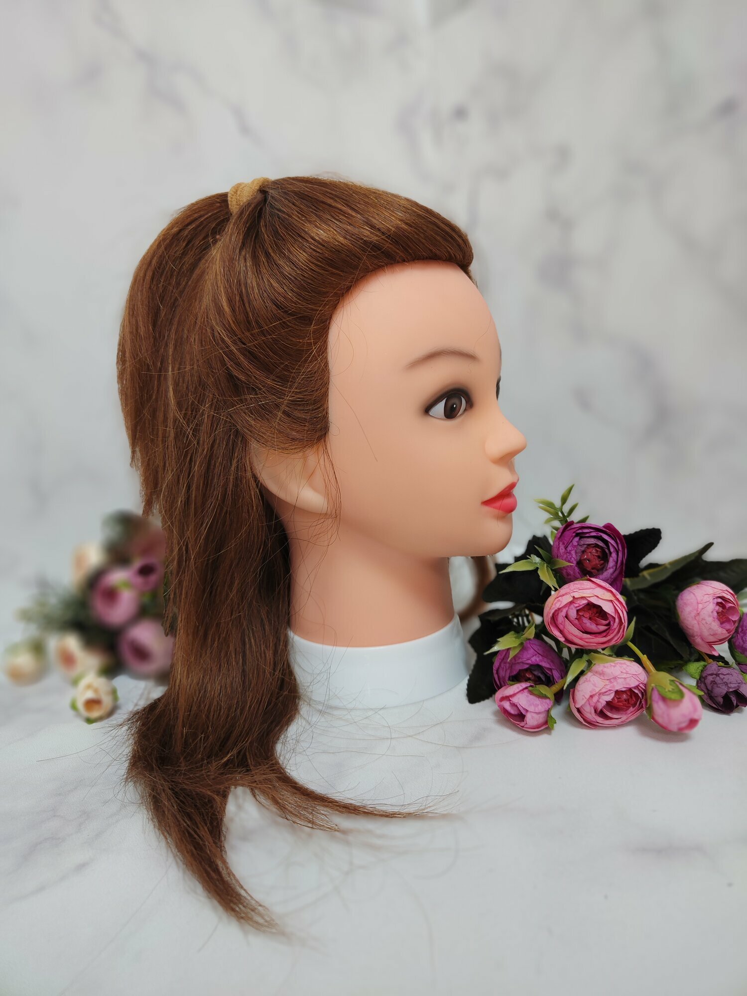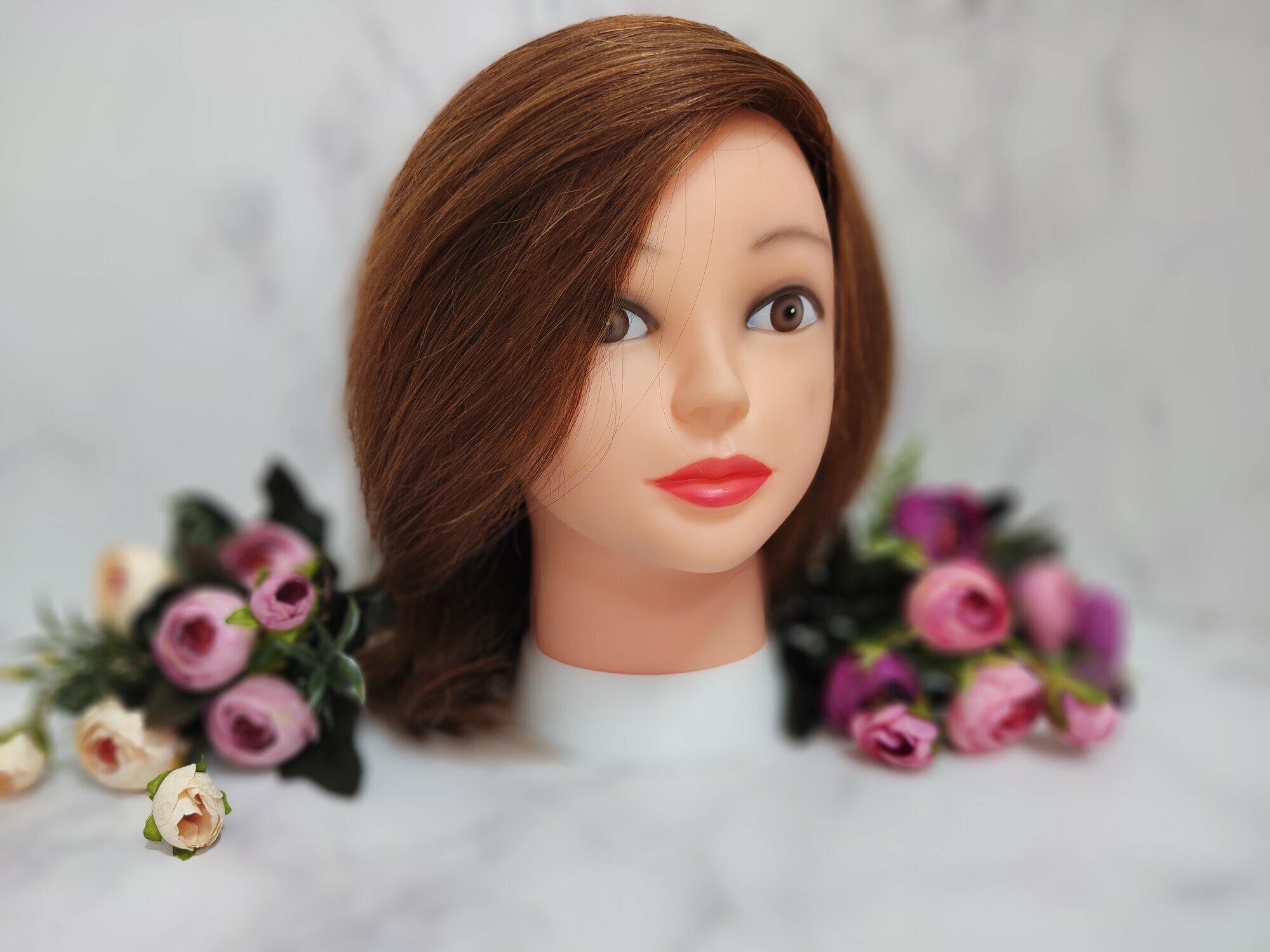 Купить Голова-манекен для парикмахера "Шатенка" с натуральными волосами 35см