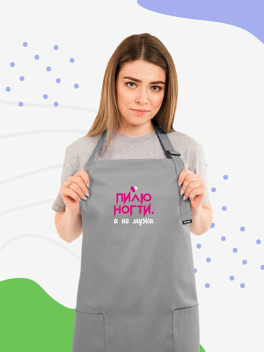 СохранитьФартук для мастера маникюра, NAIL мастера, Nail студии серый с принтом Пилю ногти а не мужа интересное: