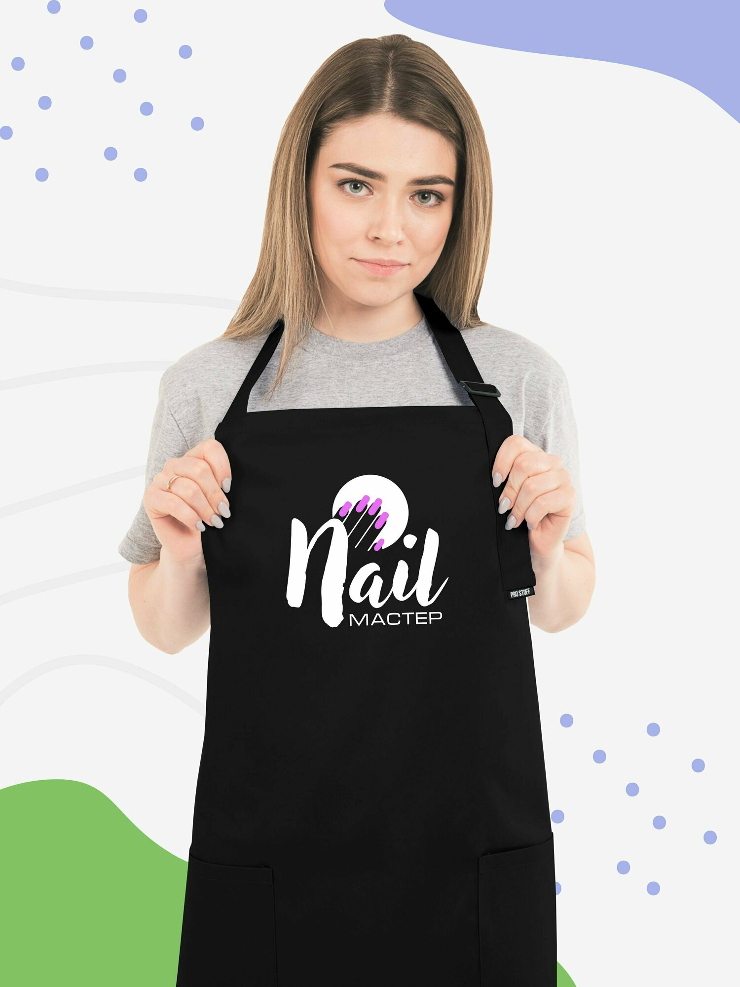 Фартук для мастера маникюра, NAIL мастера, Nail студии черный с принтом Ногти бел