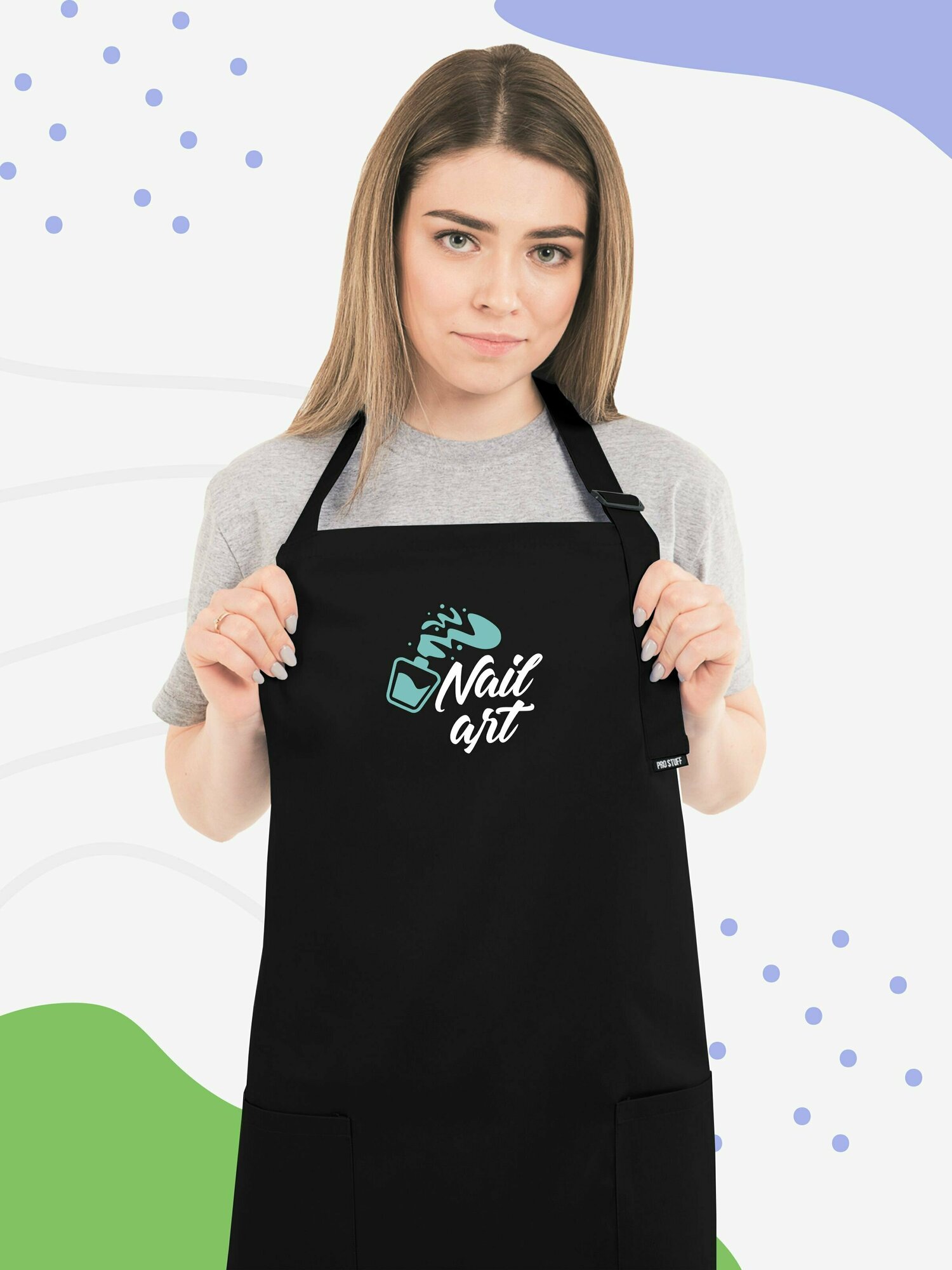 СохранитьФартук для мастера маникюра для Nail студии черный с принтом Nail Art мятный интересное: