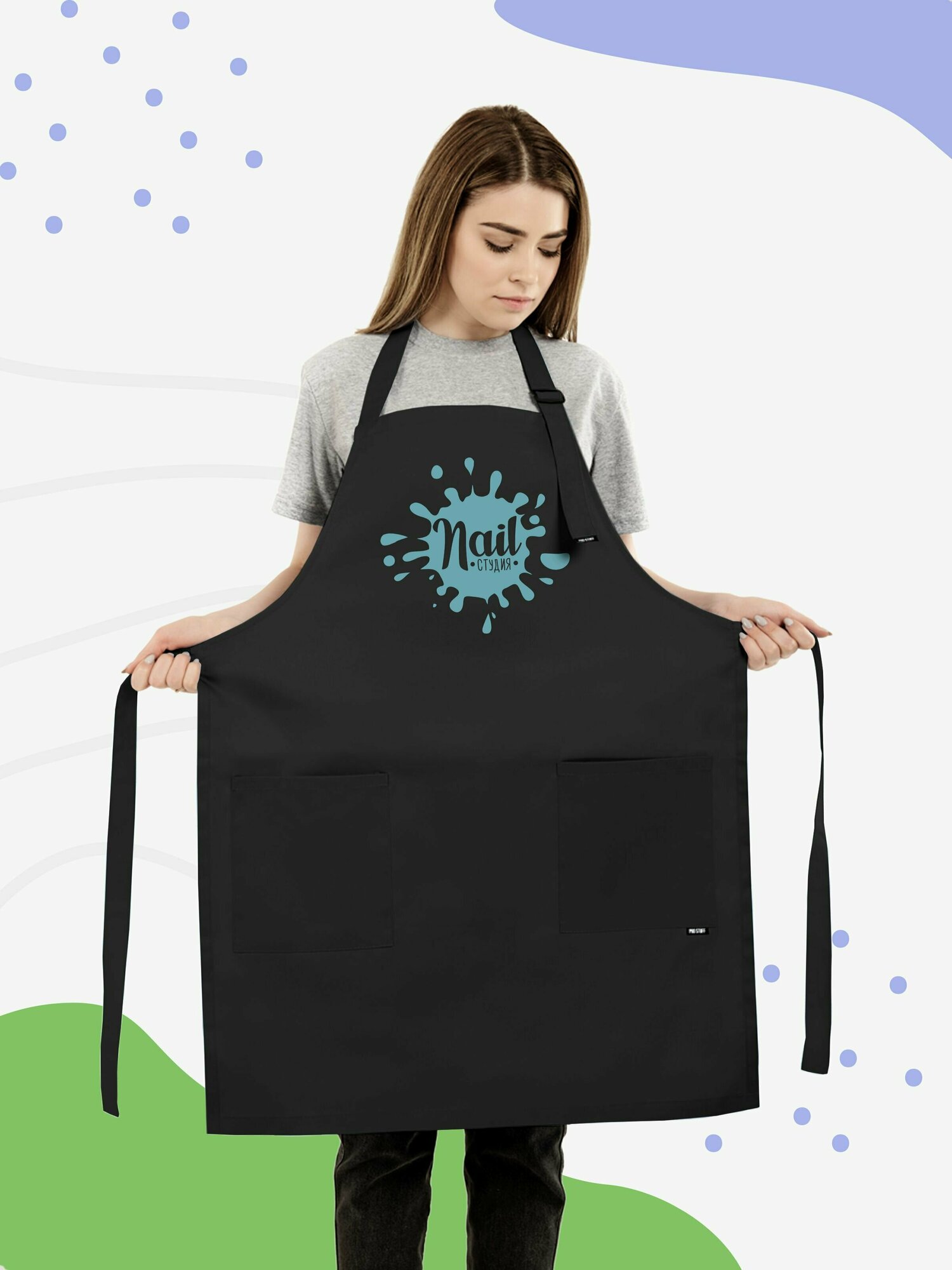 СохранитьФартук для мастера маникюра, NAIL мастера, Nail студии черный с принтом Лак клякса интересное: