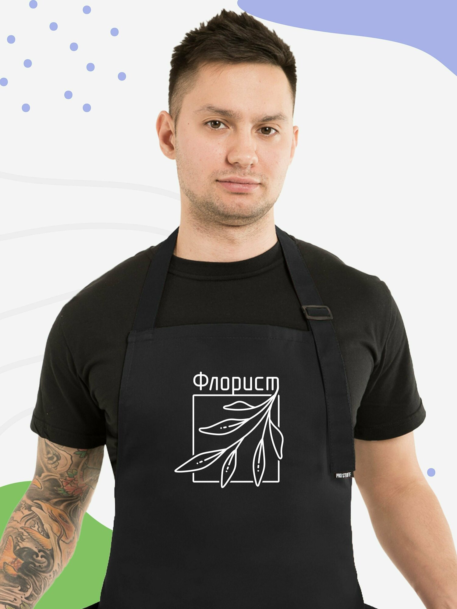 Фартук для мастера маникюра, NAIL мастера, Nail студии черный с принтом Листья