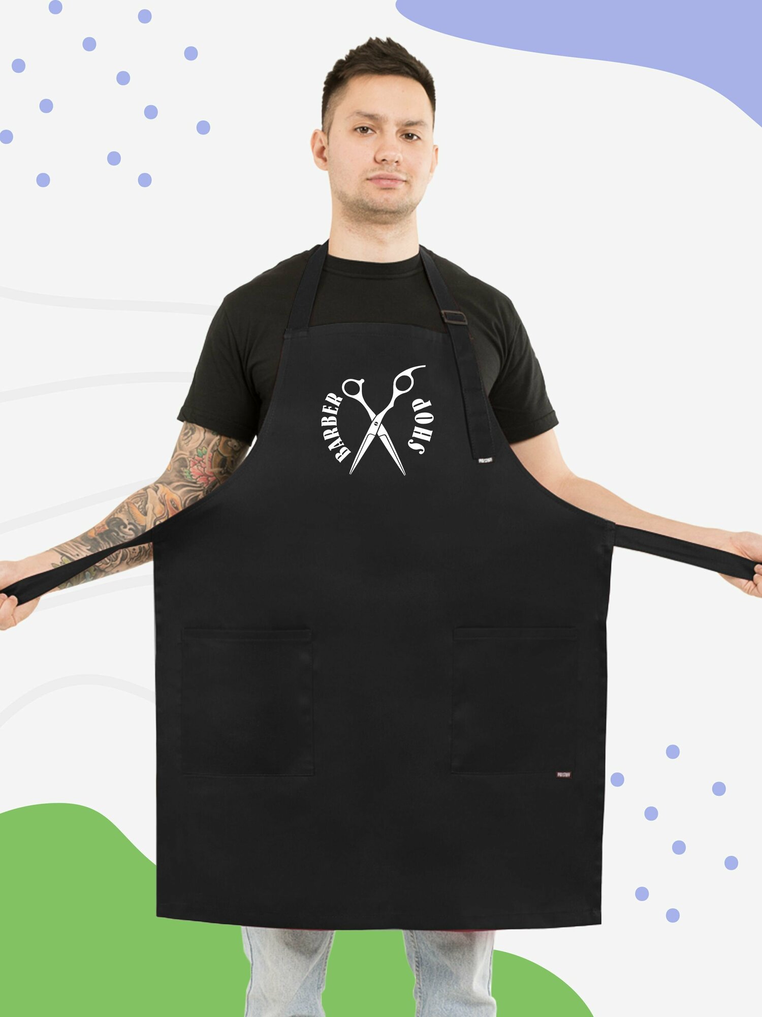 СохранитьФартук черный для барбера для бритья бороды, защитный с принтом ножницы Barbershop интересное: