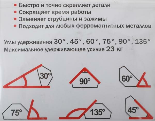 Магнитный угольник для сварки тундра, 45,90,135°, усилие на отрыв 11 кг