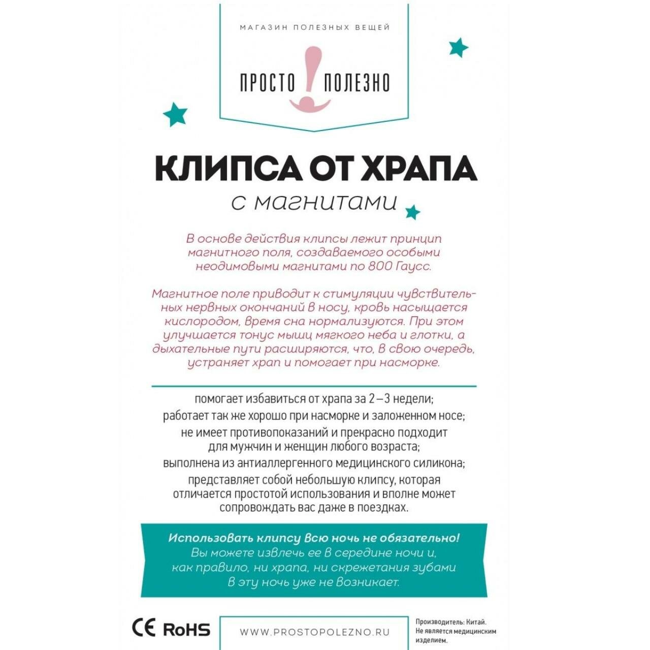 Клипса от храпа Антихрап с магнитами Просто-Полезно интересное: