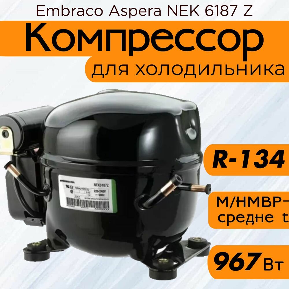 Купить Компрессор Embraco Aspera NEK 6187 Z (M/HMBP-средне t, R-134, 967 Вт при +7.2С)