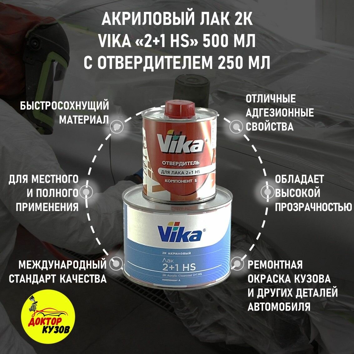 Лак акриловый глянцевый 2К HS 2+1, автомобильный Vika, 0,5 л с отвердителем 0,25 л интересное: