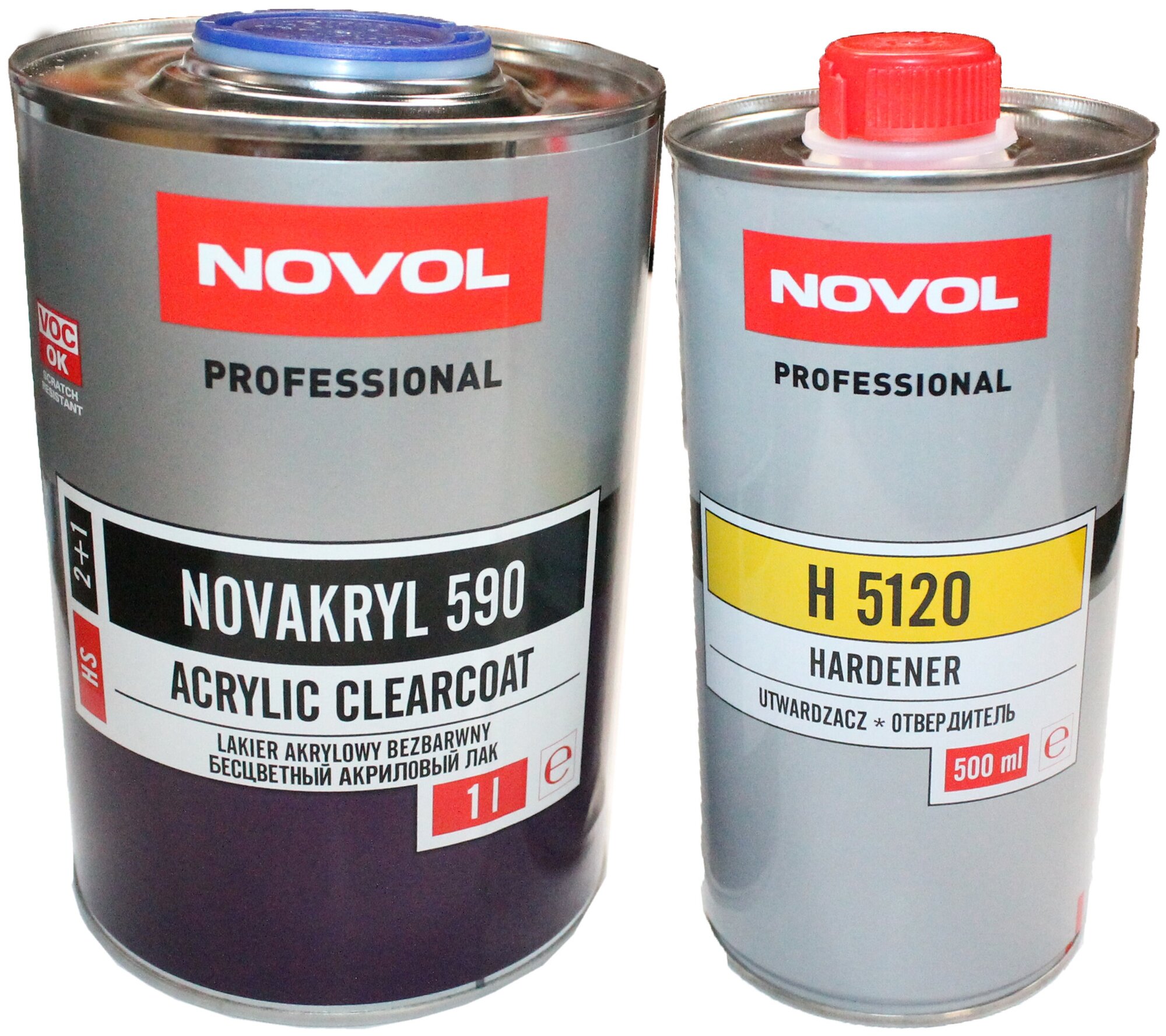 NOVOL 38091 Лак акриловый 1л - 2К прозрачный лак Novacryl 590 (2+1) с повышенной устойчивостью к царапинам, применяется с отвердителем Н5120 арт. 35631 интересное: