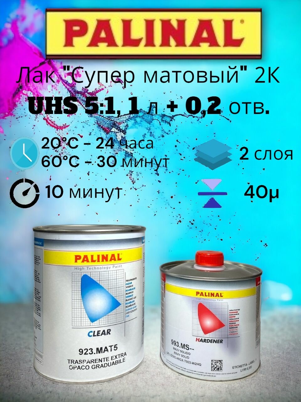 Купить Лак "Супер матовый" 2К UHS 5:1, 1 л + Отвердитель (Стандартный) 0,2л. Палинал/PALINAL