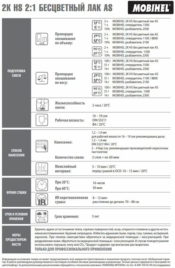 Лак Mobihel 2K HS 2:1 бесцветный лак AS